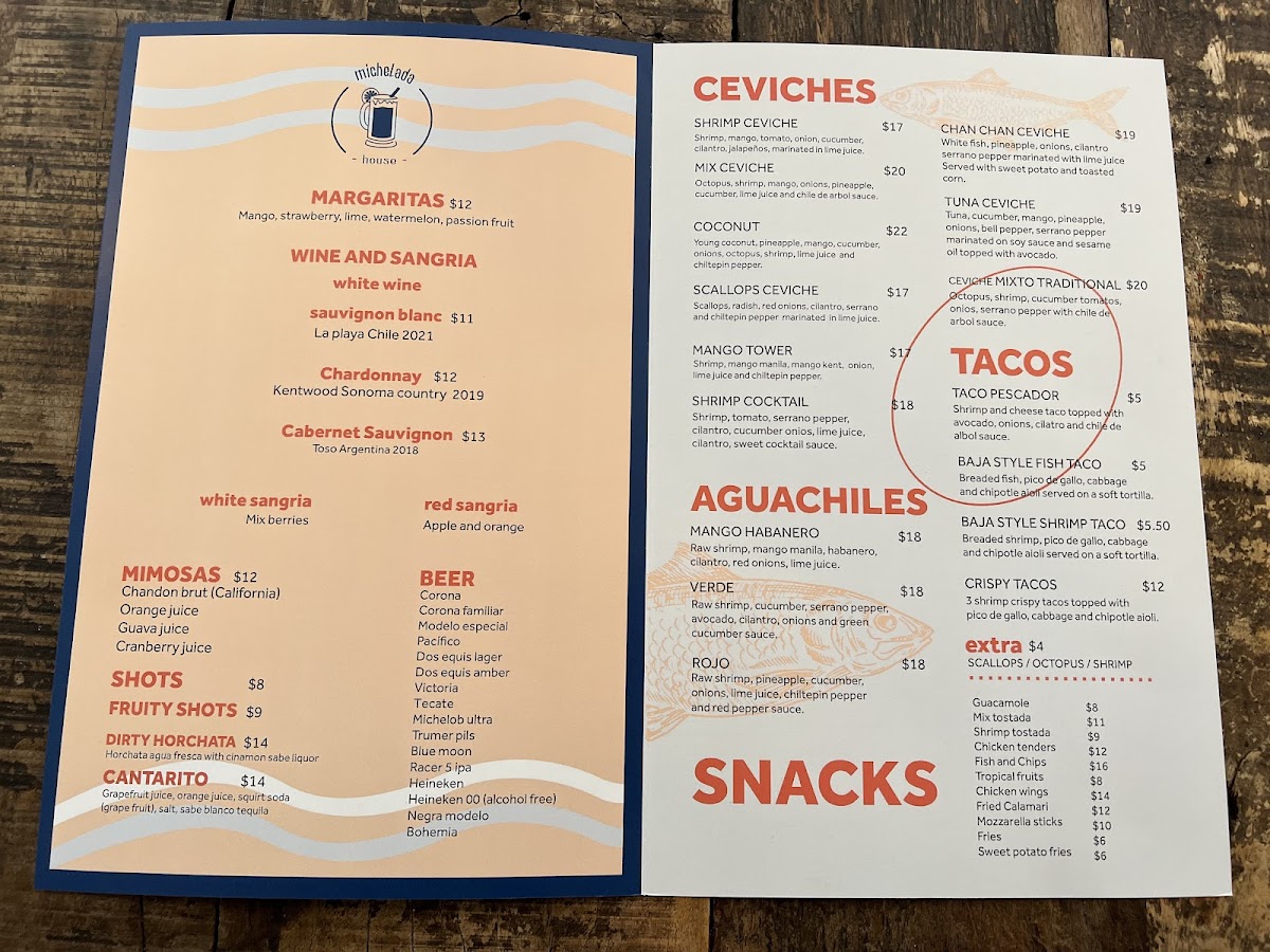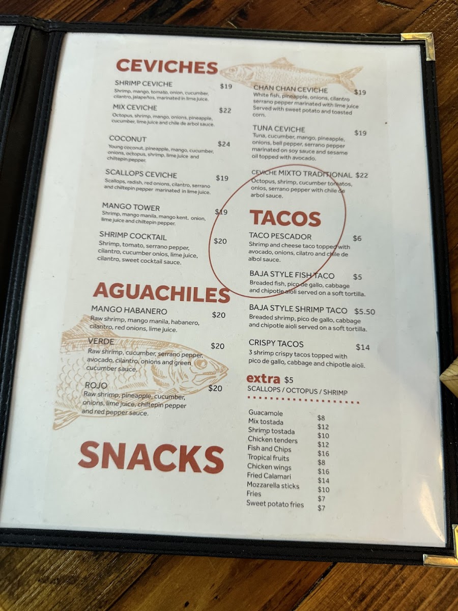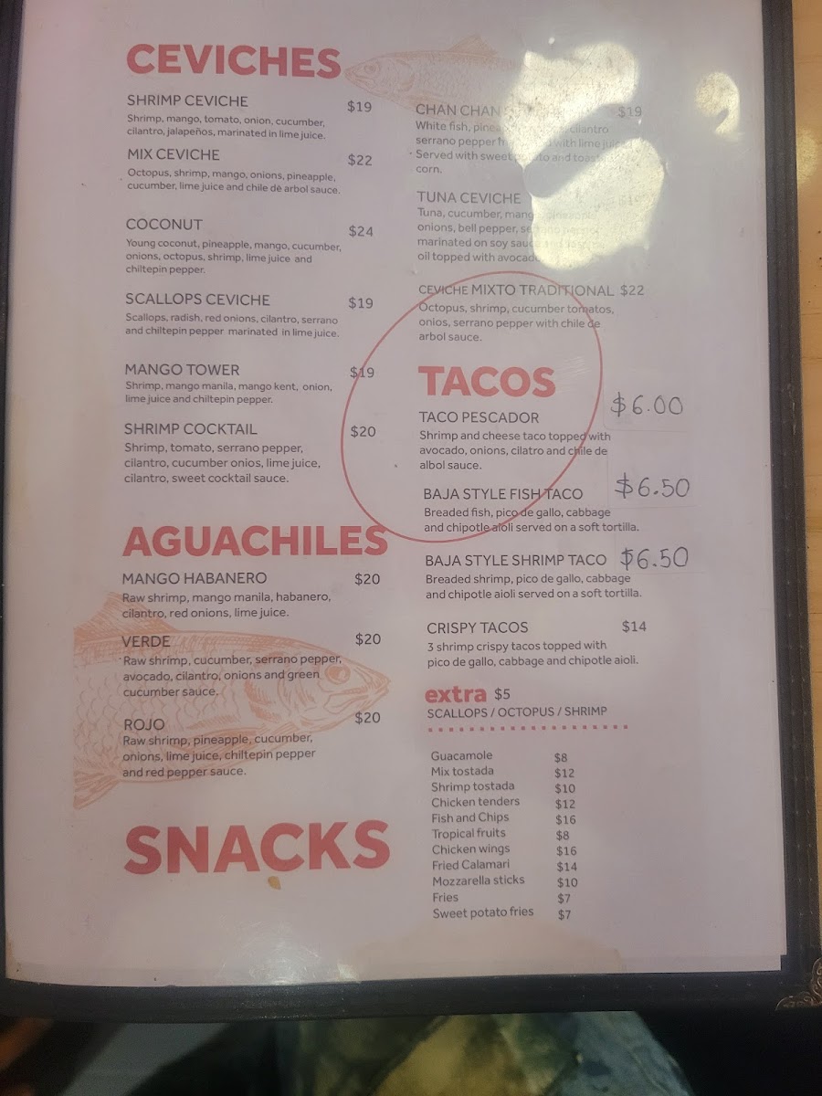 Waterfall Cevicheria offers a vibrant and diverse menu that showcases a fresh take on seafood and Latin flavors. Among the tacos, Crispy Potato Tacos, Baja Fish Taco, and Baja Shrimp Taco stand out, alongside the unique Taco Pescador and Crispy Shrimp Tacos. For a hearty option, the Lunch Box 2 and Lunch Box 1 provide a satisfying combination of dishes. Ceviche lovers will appreciate the refreshing Scallops Ceviche, Tuna Ceviche, and Coconut Ceviche, while the Mix Ceviche and Mango Ceviche bring a delightful burst of tropical flavors. Appetizers like Fruta Variada, Mix Tostada, and Shrimp Tostada are perfect for sharing, and the Fried Calamari and Guacamole add even more variety to the menu. For a lighter bite, Wings, French Fries, and Sweet Potatoes are great snacks, with the indulgent Mozzarella Sticks making for a cheesy treat. The kid-friendly Chicken Tenders, Fish & Chips, and Shrimp & Chips are a hit with younger diners. For something a bit more daring, the Mango Habanero Aguachile, Aguachile Verde, and Aguachile Rojo bring bold heat to the table. Finally, the Mix Tostada (with octopus, shrimp, and scallops), Octopus Tostada, and Shrimp Tostada are an excellent choice for those seeking a flavorful and satisfying bite. Whether you’re after a quick snack, a casual lunch, or a fresh seafood experience, Waterfall Cevicheria offers something to satisfy every craving.